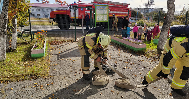 Пожарные ПЧ-10 (по охране п. Армань) посетили детский сад «Пушинка».
