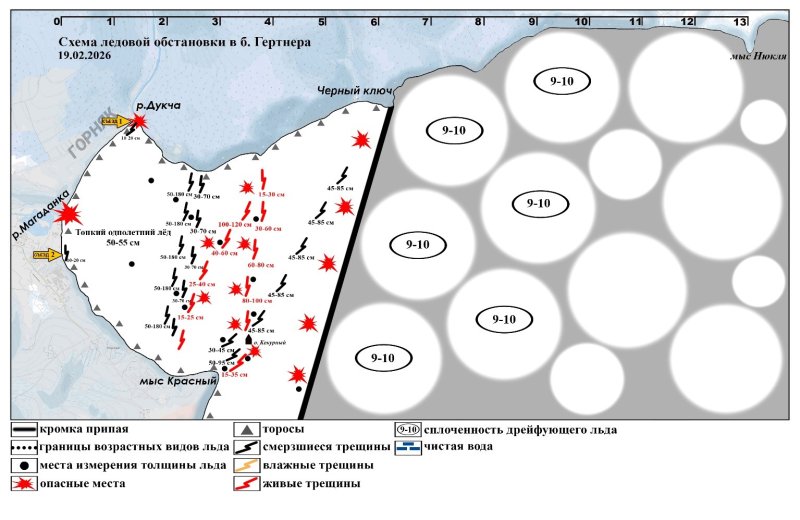 1.7.1 Обстановка в бухте Гертнера по состоянию на 19 февраля 2026 года.