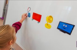 А закрепить новые знания помогли интерактивные игры. Воспитанникам было предложено отгадать загадки о электрических проборах. За каждый верный ответ они получали электроприбор-магнит и прикрепляли на интерактивную доску. Вторая игра «Найди лишнее». Дети определяли какие предметы быта относятся к электроприборам и почему, а какие нет.