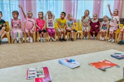 Первая часть занятий была посвящена теоретическим знаниям о электричестве: что это такое, какие бывают электростанции, как поступает ток в жилые дома, когда электричество бывает опасным. Важным в процессе усвоения новой информации – не забывать про отдых. Это и сделали воспитанники детского сада, поучаствовав в физкультминутке. Дети представляли себя маленькими частицами тока, бегущими по проводам. Малыши выстроились в полукруг, где первый ребенок – это розетка, последний – лампочка, а остальные ребята – провод. Все поочередно садились и вставали, изображая волнообразное движение, символизирующее движение тока по проводам. Когда «ток» доходит до последнего ребенка, он поднимает карточку с изображением лампочки. Это значит, что детям удалось зажечь свет.