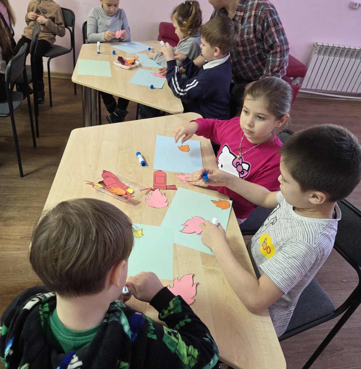 В завершение занятия дети с удовольствием занимались созданием яркой аппликации.
