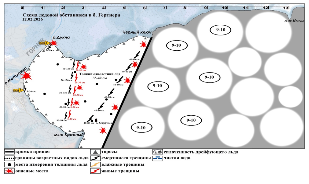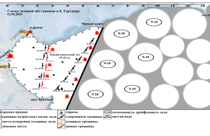 1.7.1 Обстановка в бухте Гертнера по состоянию на 12 февраля 2026 года.